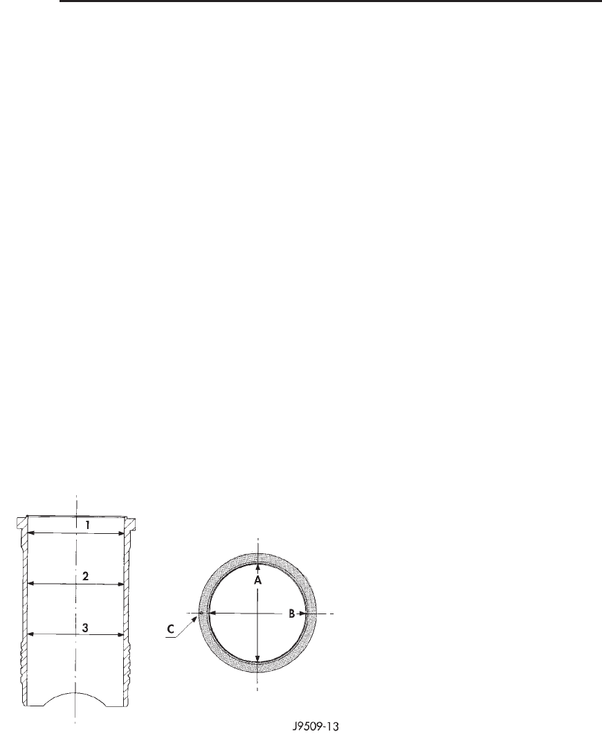 Measure the cylinder bore at three levels in direc-