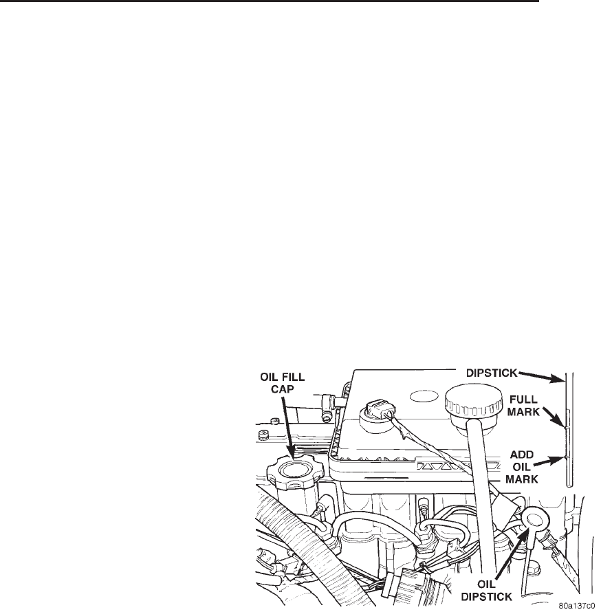 ADD OIL mark on dipstick. Either of these 2 condi-